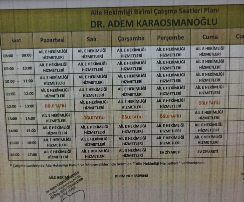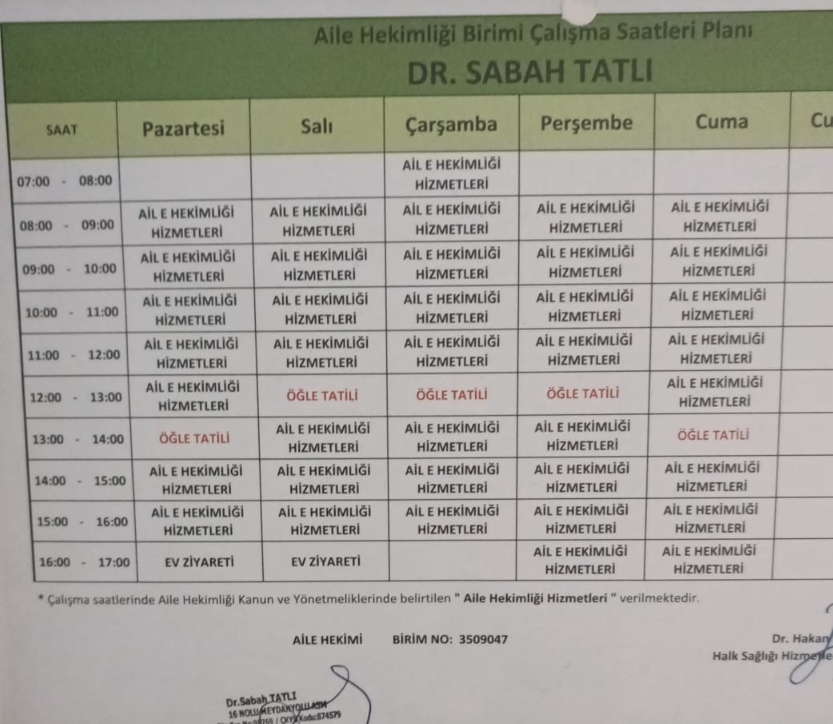 Dr. Ömer Her gün 08-12 13-17 mesai.